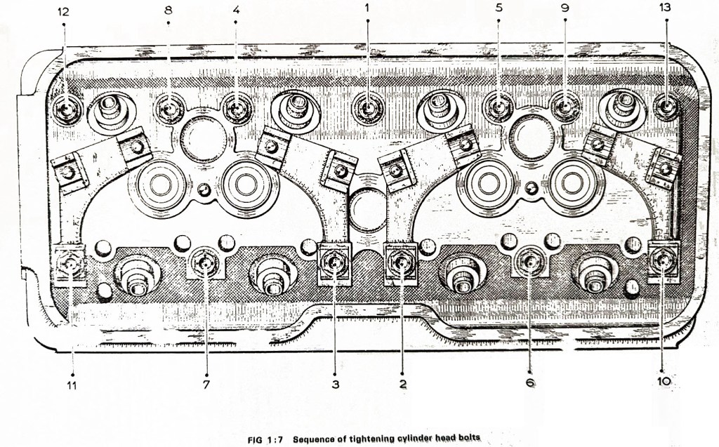 Screw up teh short cylinder head screws without tightening, then the ones holding the rocker shafts in place after installing them (the fiddly part!).