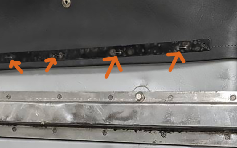 As I disassembled the shroud from the ductwork, I had to take out each heavy metal staple and decide how to replace them. Of course they were rusty, nasty and unsightly, so I decided to use stainless steel safety wire of the same gauge, and twist the ends with the proper pliers on the inside, and flatten them against their frames so if I had to reach in there later, I wouldn’t get “bit”.