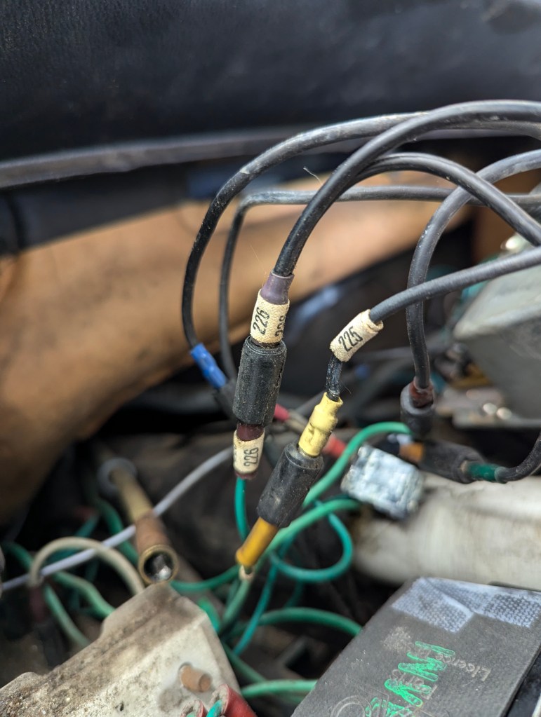 When removing the instrument panel, now is a good time to check the connectors to make sure some previous owner hasn’t changed out the proper connectors for some crimpy things. You can see here above that there’s a few oopsies, but not too bad. I use electrical cleaner spray and a nice rag to clean the wires and anything else that needs it that is covered in vinyl.